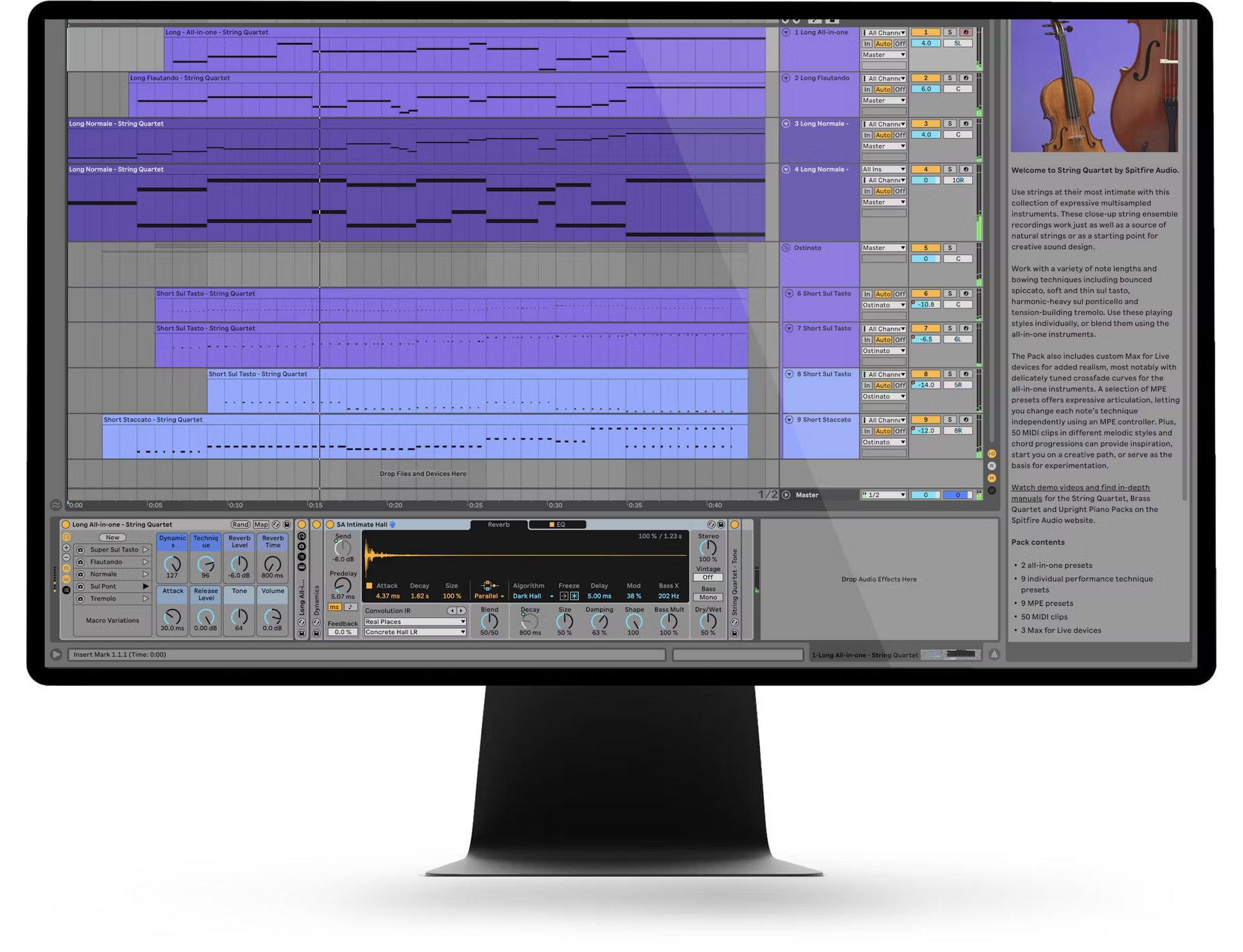 Created for Live 11 and housed within the built-in sampler, Spitfire Audio Instrument Packs bring beautifully recorded strings, brass and piano directly into the digital audio workstation. Included within Live 11 Suite or available to buy individually, these Packs unlock exciting new possibilities for expression, especially with MPE controllers.