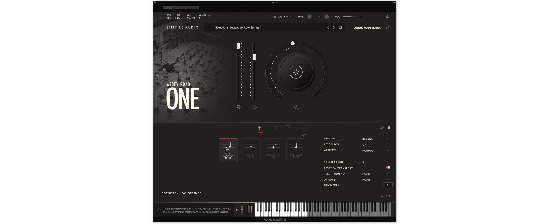 Abbey Road One: Orchestral Foundations is the first in a series of Film Scoring Selections, all recorded in Studio One. These Selections are smaller and more focused libraries inspired by classic films offering pre-orchestrated instrument pairings. Each of these Selections is designed to help you accomplish a simple task phenomenally well – such as creating achingly beautiful melodic low string lines with just one simple legato patch. They will work seamlessly alongside Orchestral Foundations as well as on their own. Priced at £49 $49 49€ you can pick and choose from these Selections to build your own palette of Abbey Road One instruments.