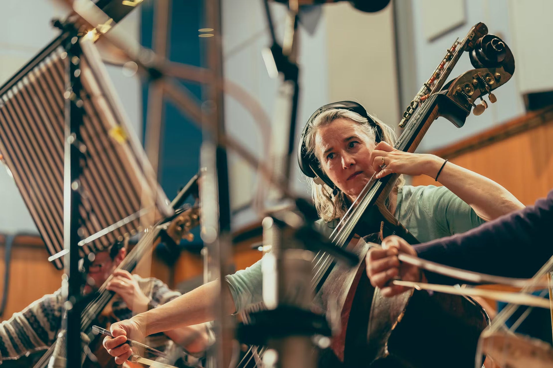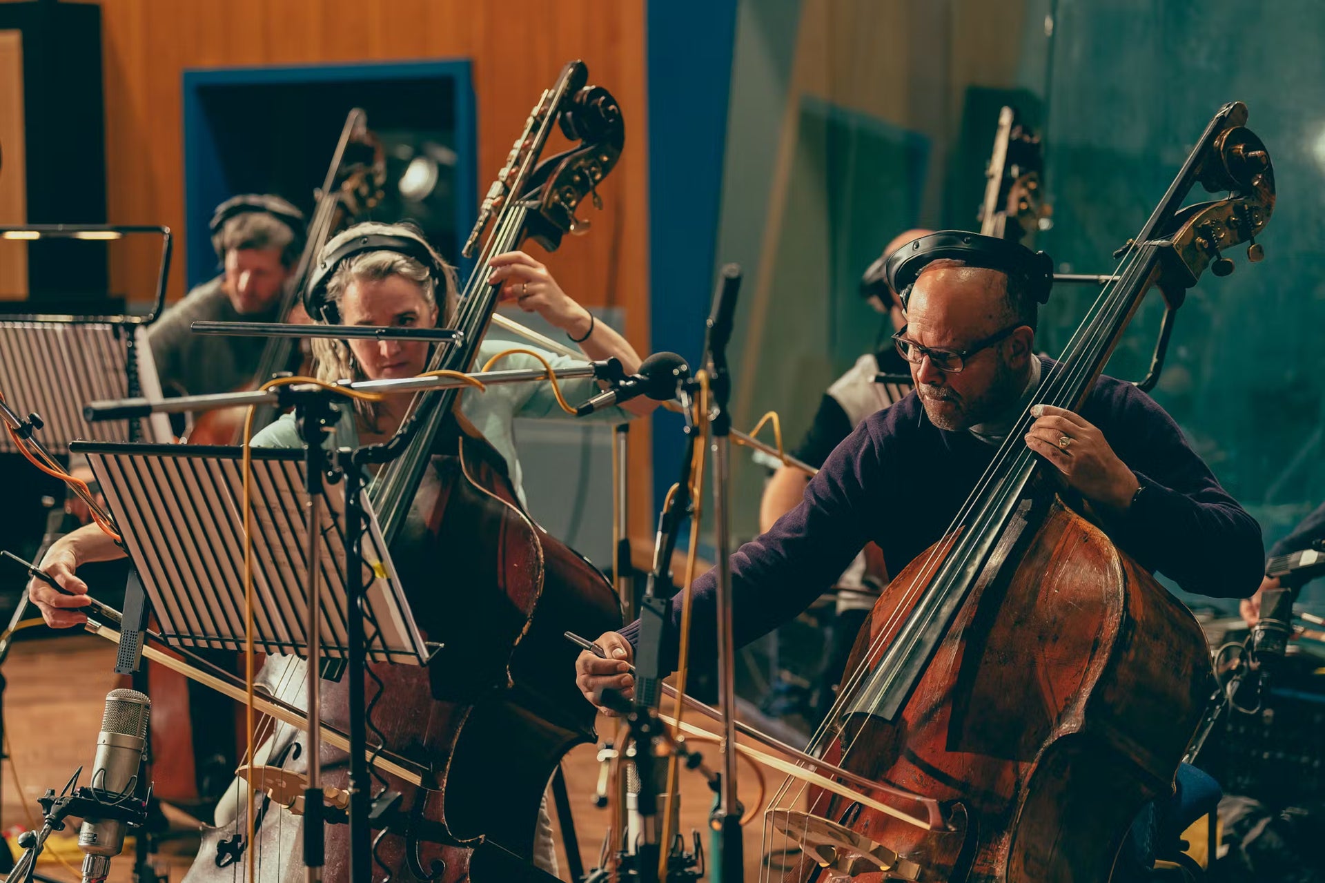 A decca tree formed of Abbey Road’s finest trio of classic valve omnidirectional microphones creating a lush and full sound.