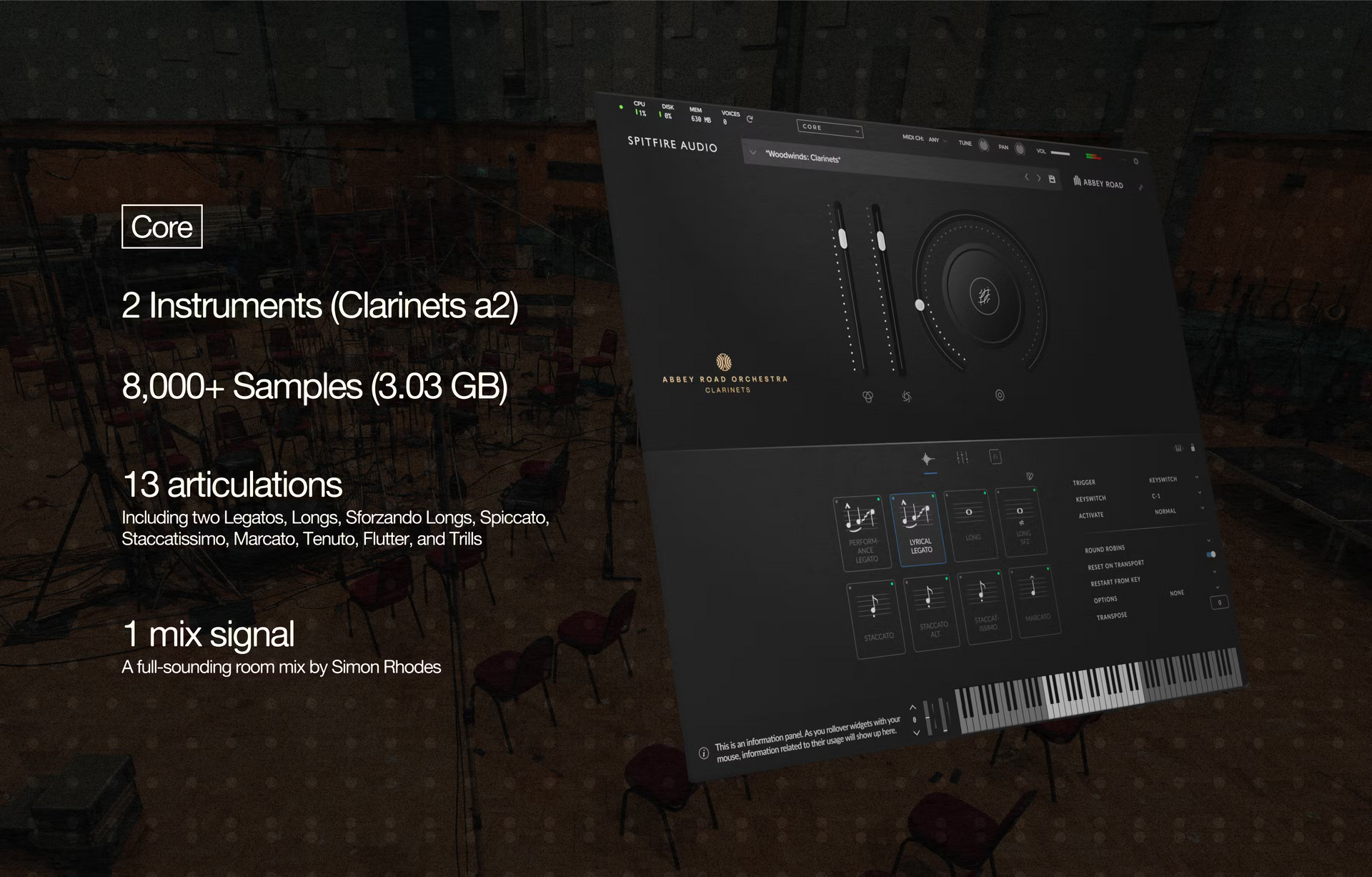 For the ultimate virtual orchestra, combine Clarinets with Abbey Road Orchestra: Flutes Core, Symphonic Strings Core, as well as Low, High & Metal percussion.