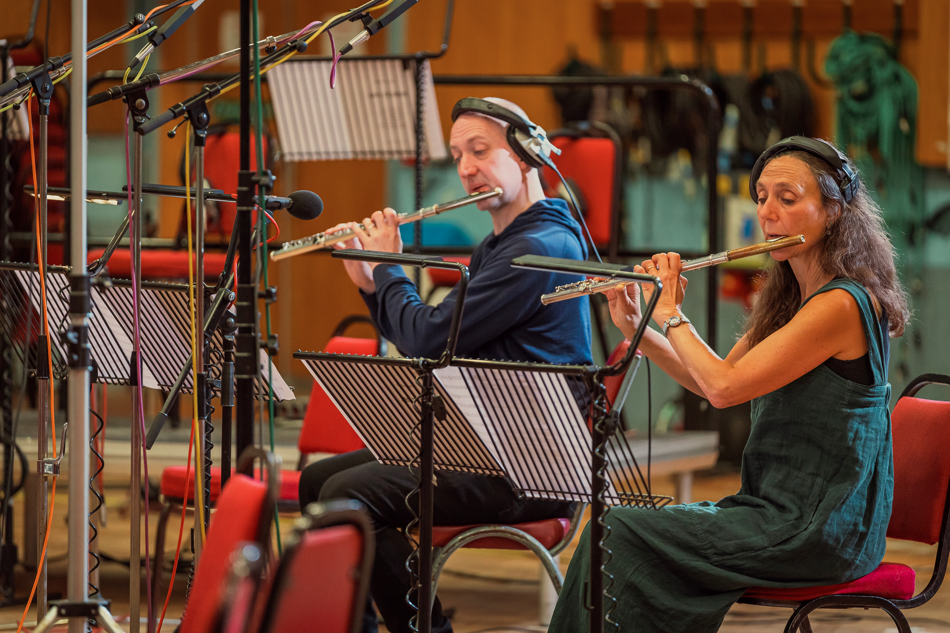 A decca tree formed of Abbey Road’s finest trio of classic valve omnidirectional microphones creating a lush and full sound.