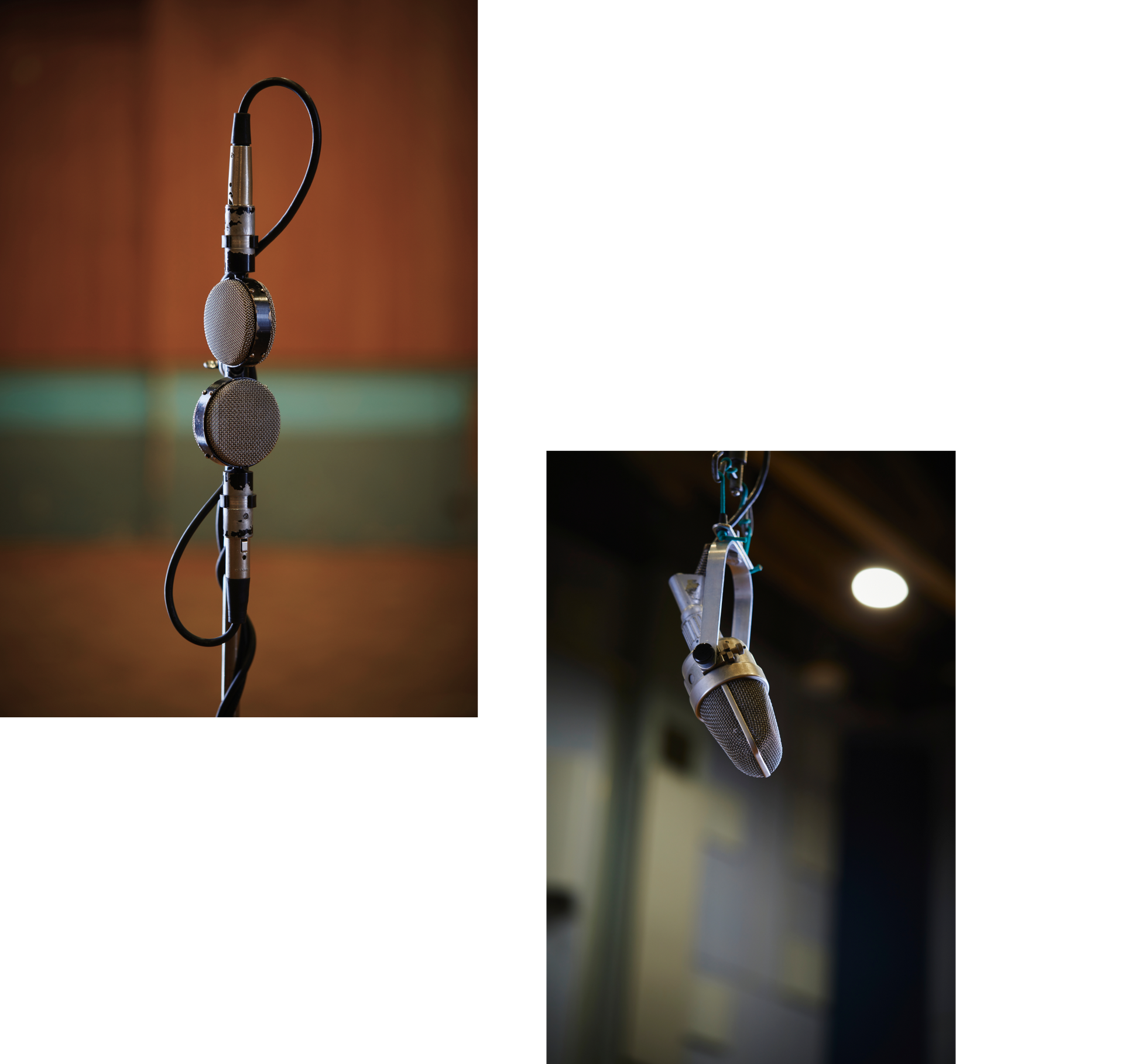 A pair of classic 44BX microphones placed by the conductor for an alternative vintage scoring stage sound.
