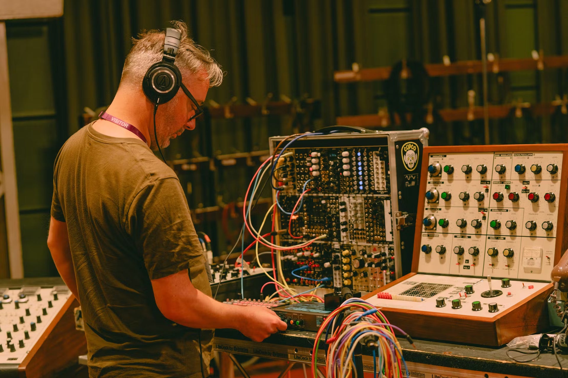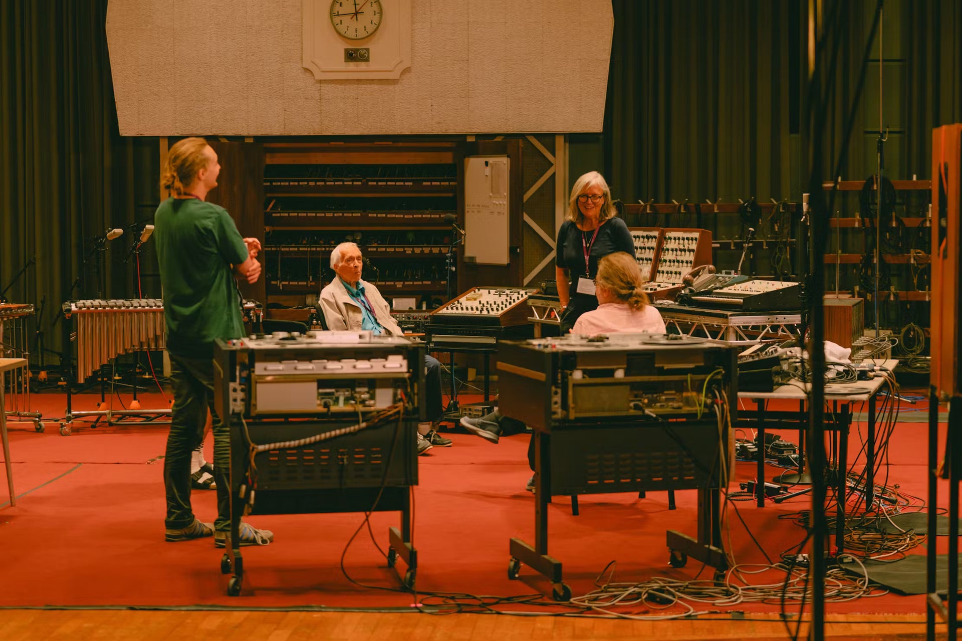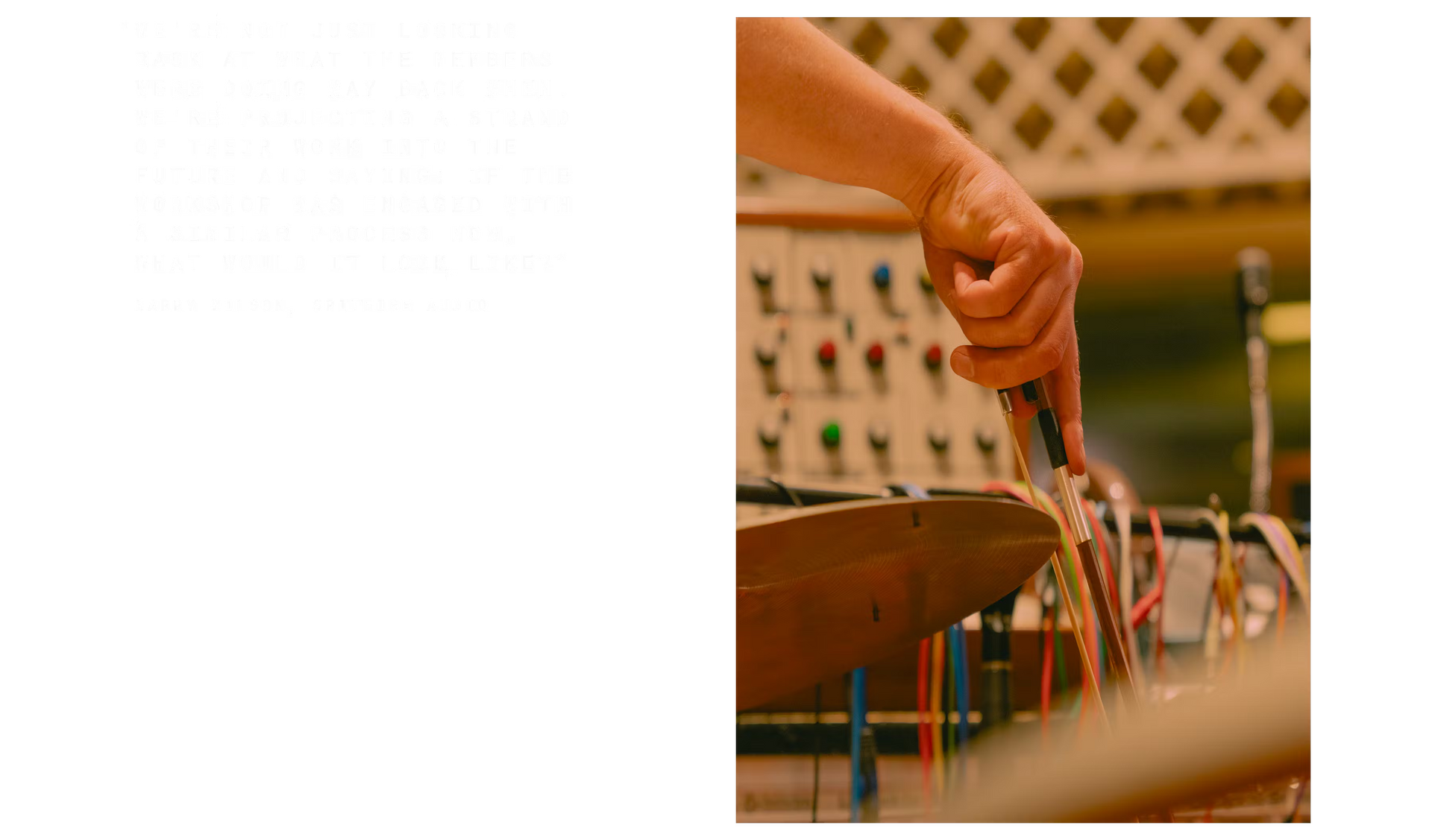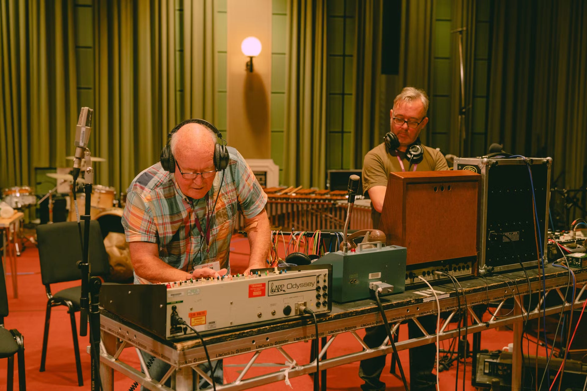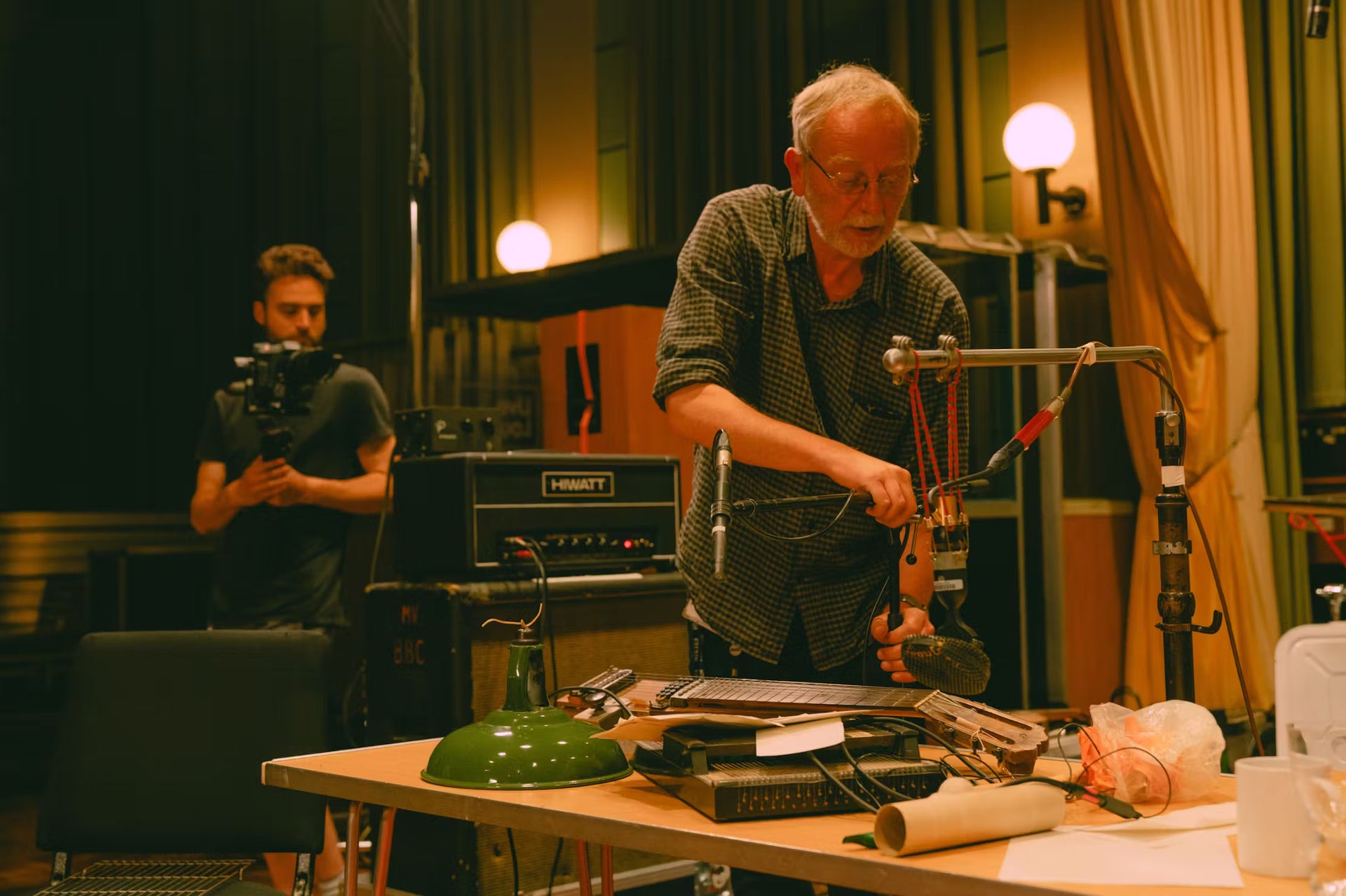We were guided through the labyrinthine archives of the BBC Radiophonic Workshop by composer, sound designer and Workshop archivist Mark Ayres – who has worked on Doctor Who and many other productions. Along with other members of the Workshop who are alive today and still gigging under the Workshop’s name, Mark has overseen a deeply sampled exploration of this other-worldy collection. New patches and performances on precious EMS VCS 3 synths, choirs of the lampshades Delia Derbyshire famously sampled and composed with, Skeleton Guitars, tape loops … And more.