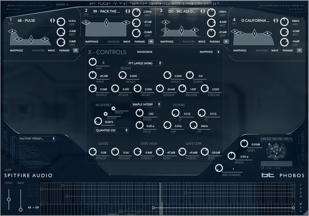 The ability to automate many of the fantastic and unique controllers is central to the vision of Phobos, which is why modulation mappings - the way in which functions are mapped and then ‘modulated’ (or changed) in realtime or automated via controllers - are key to many of our presets, and are applied both to Source/Convolver.