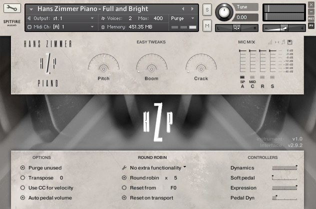 In his fourth collaboration with Spitfire Audio, legendary Oscar-winning composer Hans Zimmer presents the ultimate piano library. A personal favourite of Hans himself, this beautiful instrument bursting with life, depth, and character is the in-house grand piano at Lyndhurst Hall at AIR Studios, one of the best scoring stages in the world. Expertly recorded by Hans' renowned engineers and the award-winning Spitfire team, this library embodies what Hans described as a 'once-in-a-lifetime' opportunity to create a world-class piano writing tool for discerning composers the world over.