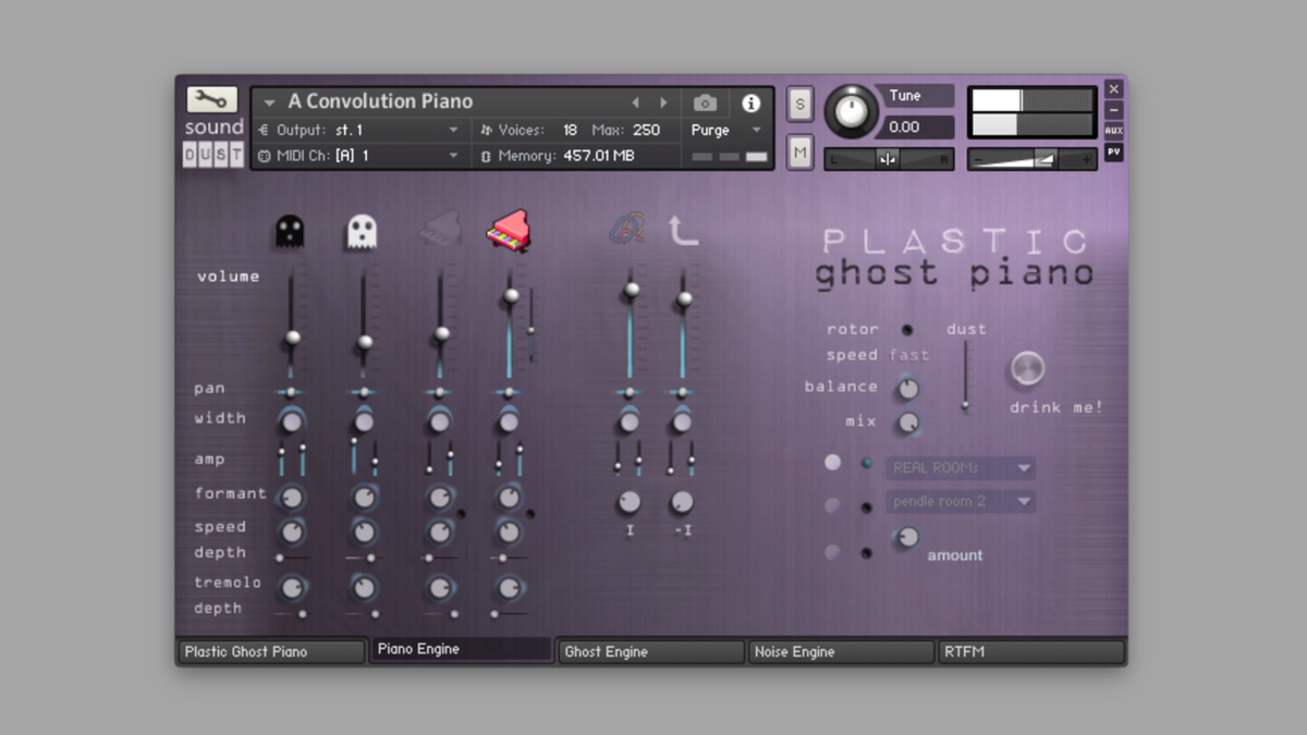 The Plastic Ghost Piano, a Spitfire favourite, is a strange, beautiful, analogue sounding hybrid piano, made by pushing bursts of controlled noise through unsuspecting piano samples. Warm and richly sampled, oozing character and endless sonic possibilities, there really is nothing else quite like it. Sounds range from woody and expressive acoustic piano to a soft, gorgeous felt piano, paired with ambient, otherworldly sounds, recorded as convolutions.