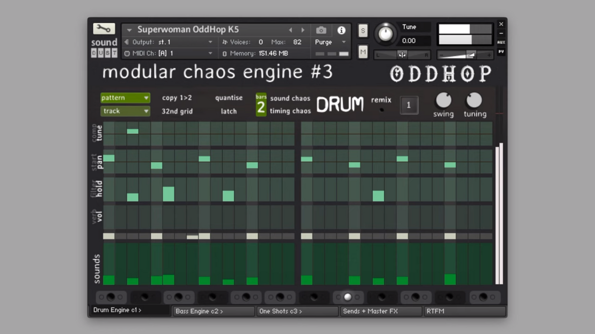 OddHop is part of a modular chaos engine - imagine a 303 and a 909 drum machine fused together, with additional quirky percussion machines for disappearing down a rhythmic rabbit-hole. Packed with hundreds of original acoustic and electronic sounds arranged into five octaves of one shot kicks, as well as pre-programmed vocal samples, pianos and basses. You’re literally never sure what you’re going to get.