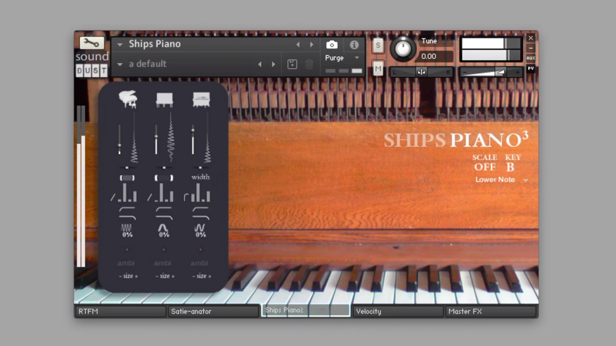 Made out of a selection of three characterful pianos — a ships piano, a ‘school hall’ grand, recorded binaurally in a Hogwarts-style school chapel, and a deviously altered home upright, reversed, fed into high end reverb and reversed again for a backwards attack effect. With a multitude of effects, including ADSRs, high and low pass filters, vibrato and convolution reverb, you can cunningly combine different aspects of each piano to create impossible sounding piano hybrids. This gives you a beautiful, incredibly expressive selection of piano sounds.