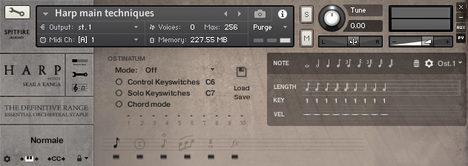 The library features multiple round robins and dynamic layers, presented in an easy to use GUI. Harp pedalling is available to make it even easier to play your own sweeps and glisses right from the keyboard — you can now set the harp pedals graphically, and just play the white notes. Alongside a stunning selection of single hit articulations, glisses are playable in every key, in the following scales: major, minor harmonic, minor melodic, pentatonic, diminished, whole tone. We have recorded full sweeps up and down, fast and slow, split the harp into four registers, and then recorded a swirly gliss, up and down. In addition, we give you an otherworldly set of 'Harposphere' patches - beautiful pads and textures created from our original organic recordings.