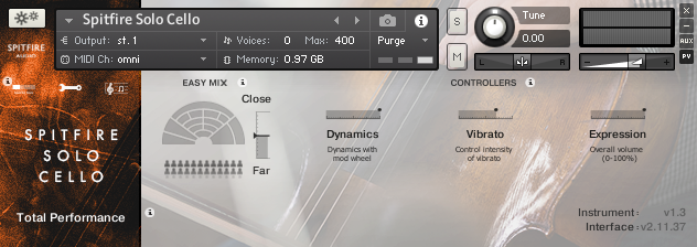 Spitfire Solo Violin Total Performance and Spitfire Solo Cello Total Performance both contain all the techniques you need to create realistic solo performances — five different types of true legato: portamento legato, fingered legato, bowed legato, runs and arpeggios. They also feature: spiccato, staccato, tremolo, molto vibrato, progressive vibrato and non vibrato, plus pizzicato & Bartok pizzicato in Solo Cello — all combined together to enable musical phrasing without the need for key-switching, and programmed to react to playing speed and touch. This patch is easy to play and ultra-intuitive, allowing you to focus entirely on your composition, without the need for ‘stitching’ together performances.
