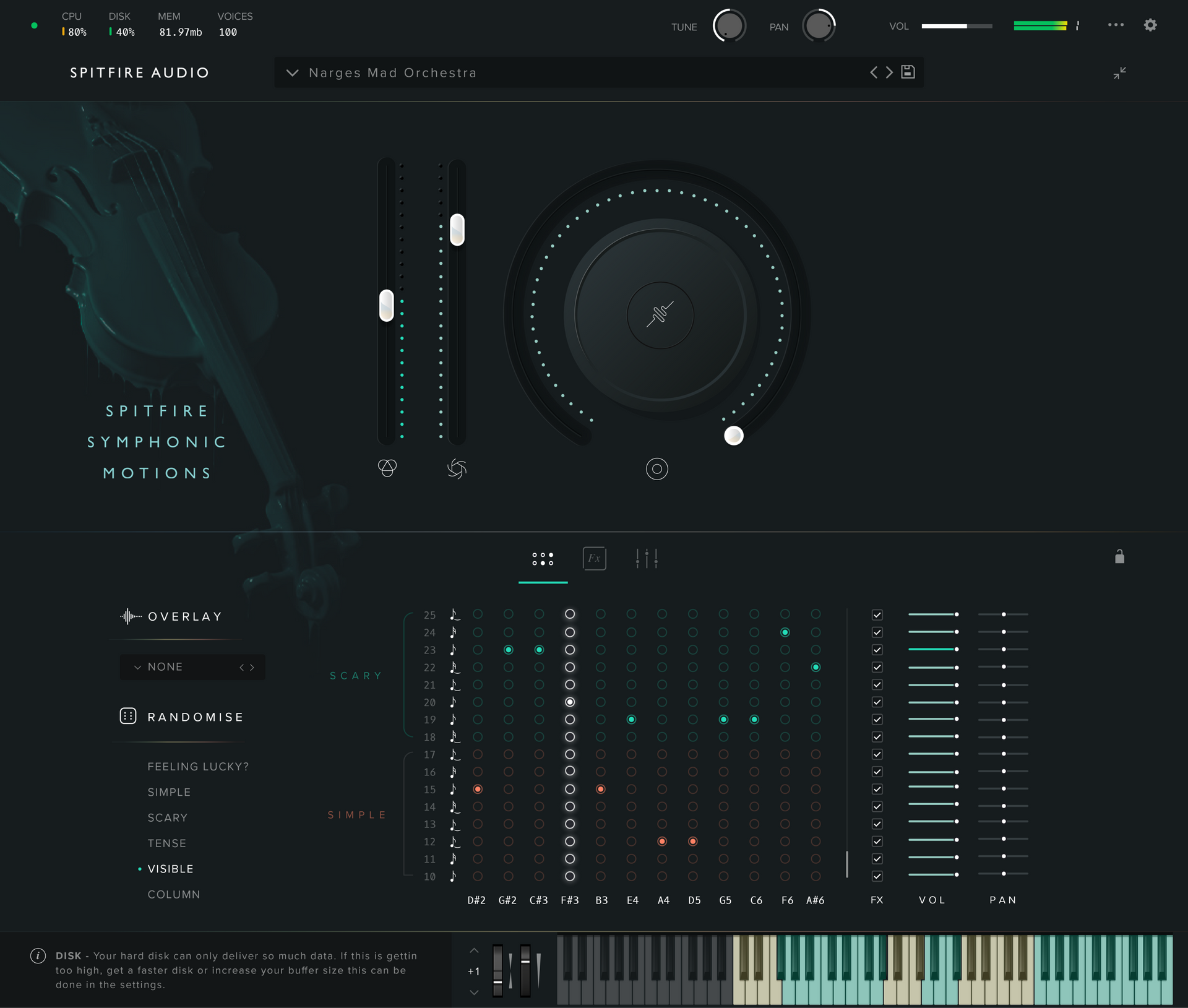 Available in our award-winning, easy-to-use plug-in and NKS ready, the sophisticated, intuitive grid layout allows you to easily and quickly create intricate, realistic and expressive rhythmic strings. Much like our Spitfire Evo libraries creating realistic long notes, Spitfire Symphonic Motions offers the same for short and rhythms. Choose from an essential selection of playing techniques, and combine these with short ‘Overlay’ techniques for accents and blending to create a more nuanced, dynamic sound. You also have up to four different rhythms to choose from (6ths, 8ths, 12ths, 16ths) with two phrasing options (discrete/staccato and smooth/legato), locked to the host tempo in your DAW.