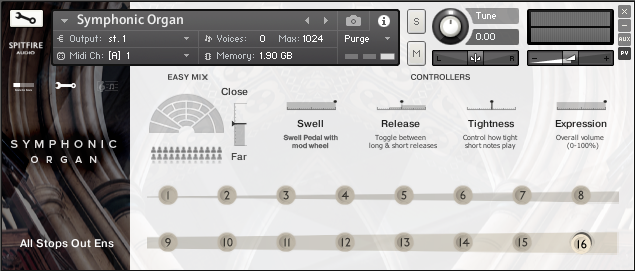 Every pitch has been recorded, to give you that natural room sound. Choose our default curated mix, or mix and match six expertly placed microphone positions for extra control — from mics placed inside the organ itself for an amazing full-tilt sound, to ambient mics for a wider, more resonant tone. Presented in dynamic order, from quietest to loudest, you can mix presets by choosing any or all of the stop combinations.