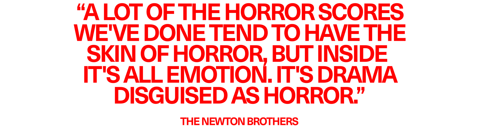 The Newton Brothers, Andy Grush and Taylor Stewart, are the award-winning composers behind some of the most memorable and terrifying soundscapes in recent film and television. Their long-standing collaboration with visionary director Mike Flanagan has redefined the sound of modern horror, producing scores for The Haunting of Hill House, Midnight Mass, and Doctor Sleep that are masterclasses in tension, prioritising psychological terror and emotional depth over indulgement in horror clichés.