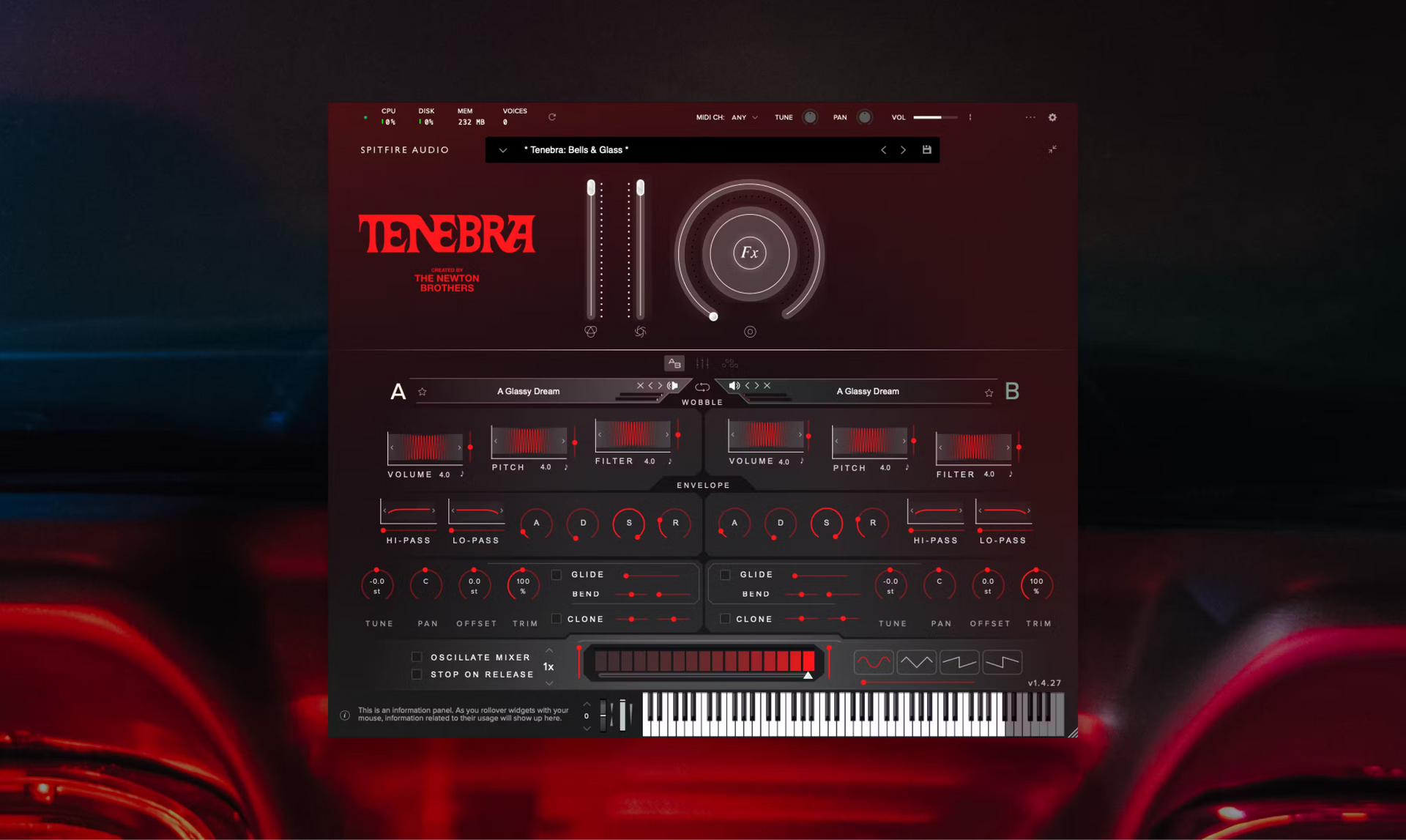 Tenebra offers a huge variation of sounds, from solo instruments recorded in their studio to full-scale orchestral sessions from world-class stages, all meticulously processed to create their signature sonic identity. More than 100 sounds, split into Bells & Glass, Drones, Guitar Dulcimer Citole, Humanity, Orchestral, Percussion, Synths, Woodwinds and Warps, expertly crafted into over 130 presets by the Newton Brothers themselves.